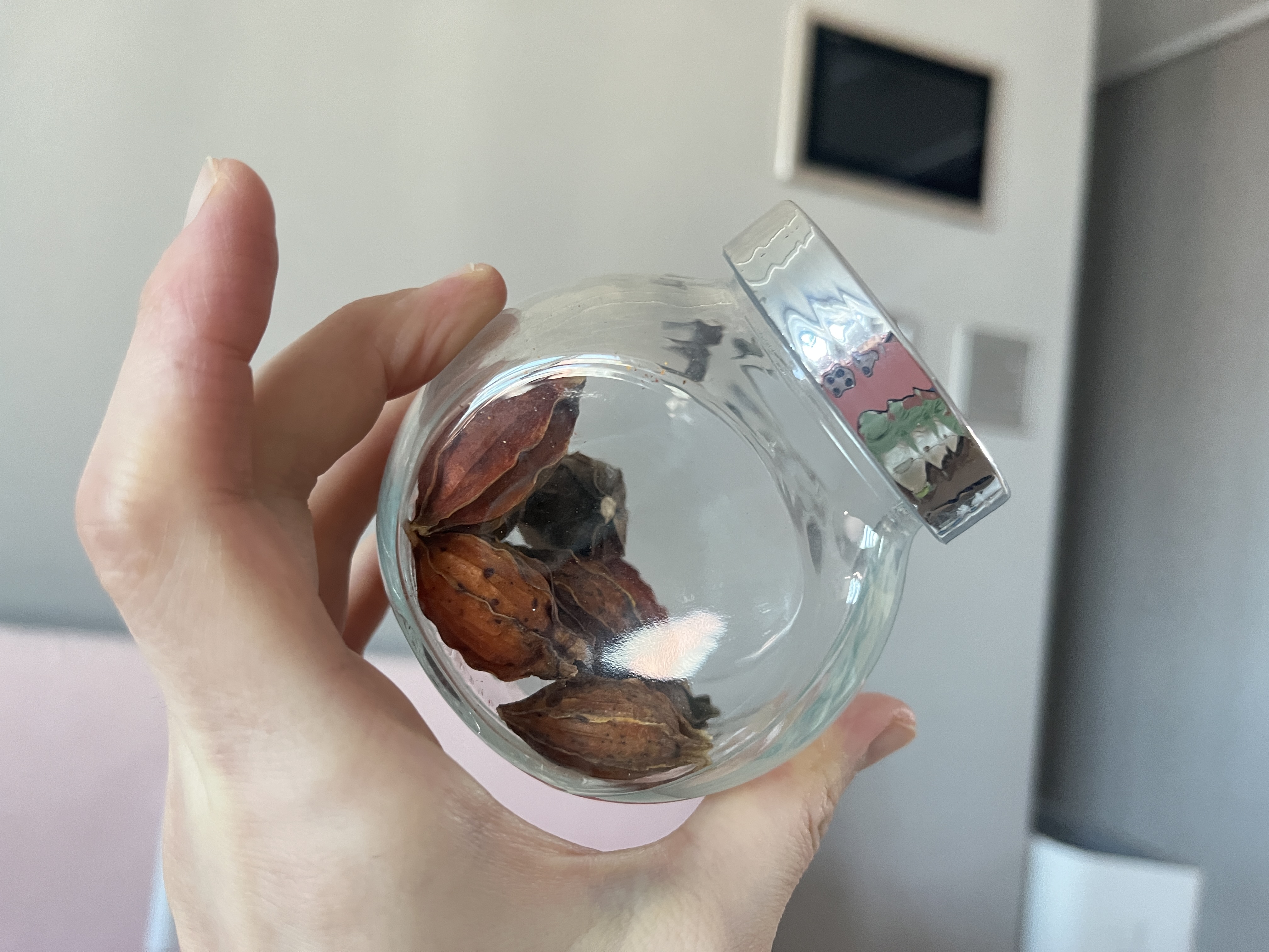 집에 있는 병에다가 치자를 넣었다. 예전에 단무지 만들려고 사 놓고 많이 남았는데 우리 아가 장난감이 되는구나