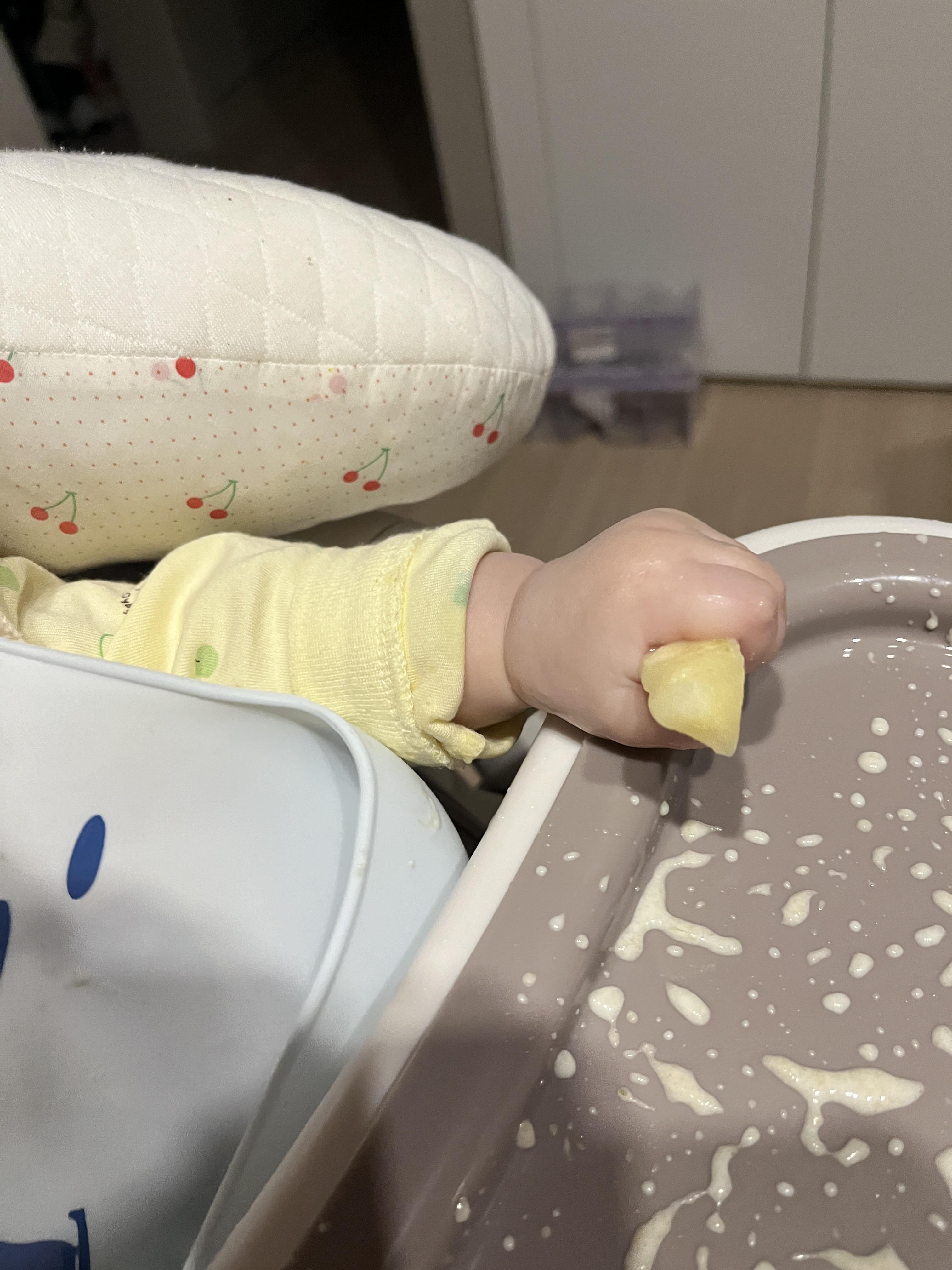 생선 스틱을 쥐어주었고, 여러번 식판에 떨어뜨렸으나 다 먹었다. 보통 한 입 물고 버리더니 왠일^^